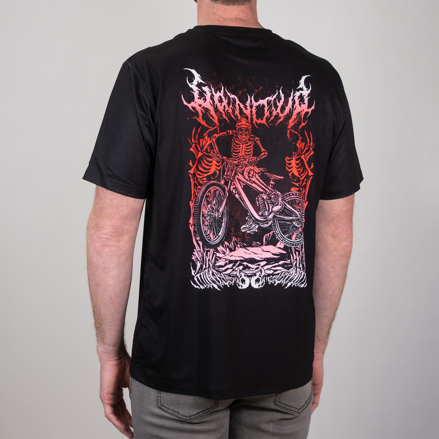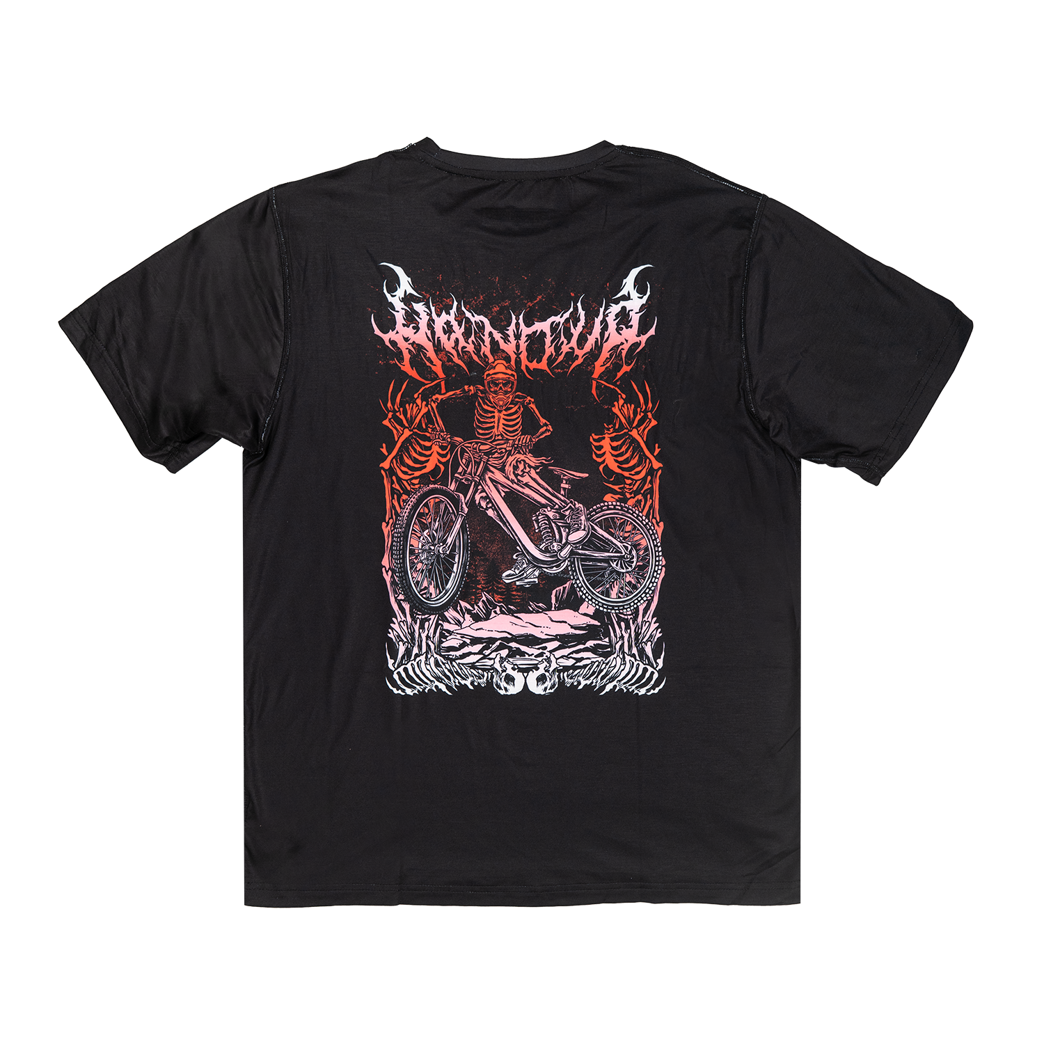 For those who treat every ride like a headbanging solo, the Death Pedal design brings brutal style to the trail! Featuring a death metal band-inspired design—think jagged fonts, skulls, and a rider whippin' a huge gap—this ActiviTEE is made for riders who crush trails as hard as a double bass drum blast.