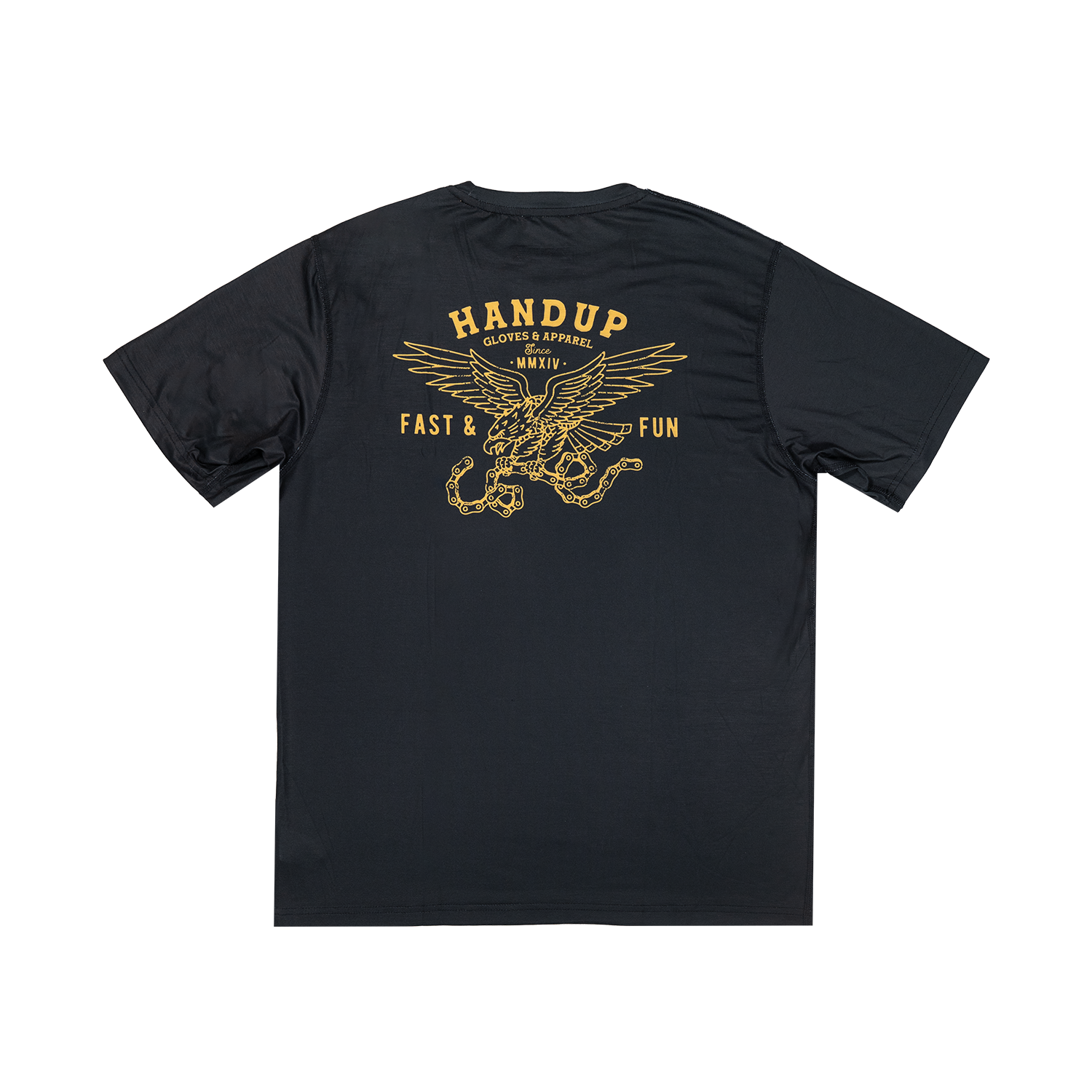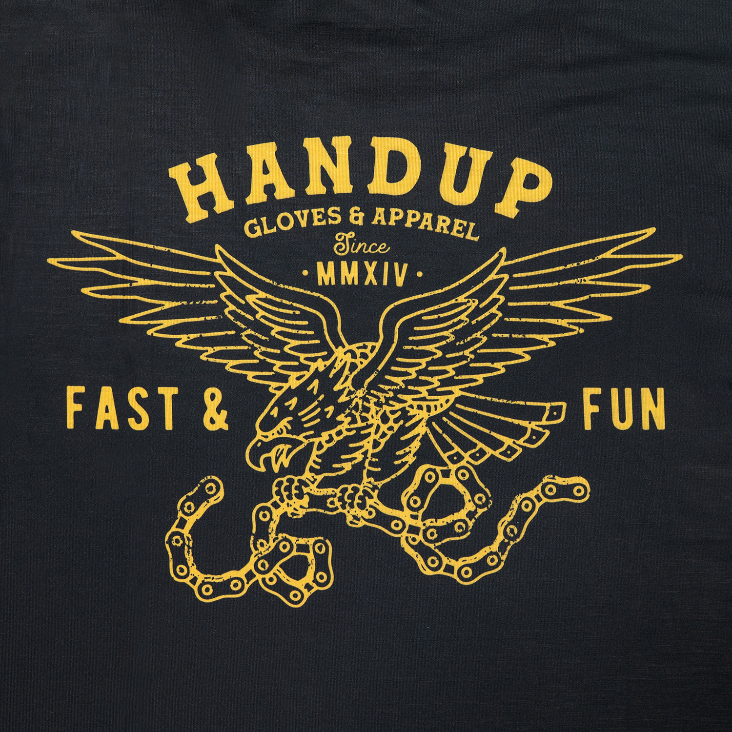 Strong wings and no mercy for weak chains. The Screamin' Eagle traditional tattoo artwork features a noble eagle clutching a bike chain like it’s earned every link. It’s a nod to freedom, grit, and the kind of riding that leaves marks — on the trail and on you.