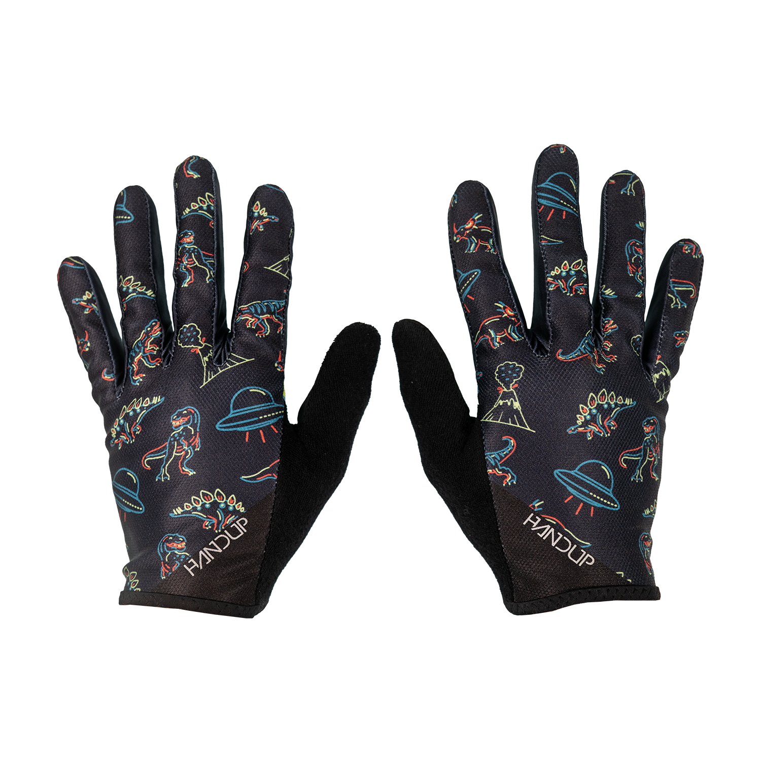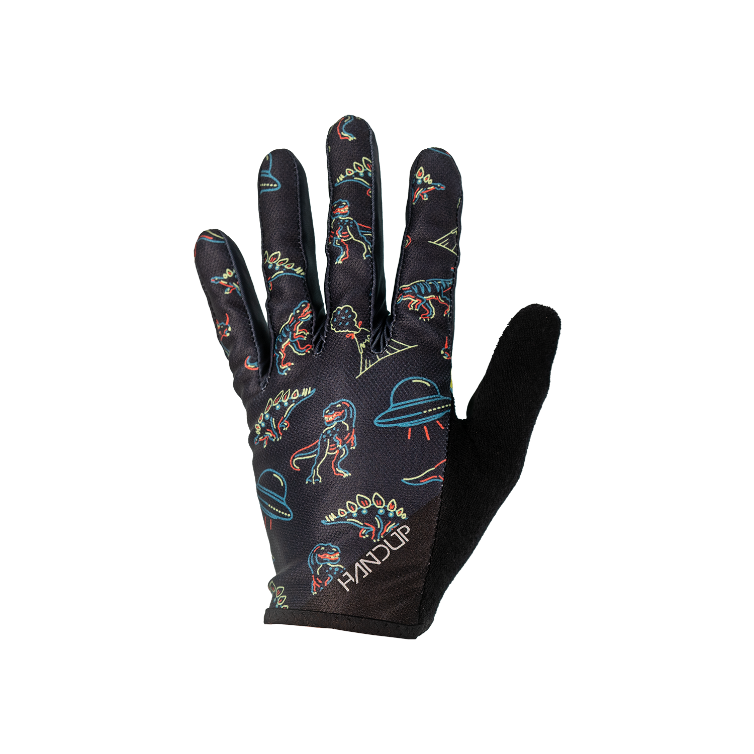 Nobody really knows what happened to the dinosaurs… but we’ve got a theory. These gloves explore the idea that aliens rolled in, scooped up a few dinos, and left the rest of us to ride bikes and ask questions. These gloves are for those of you who wonder what’s really out there beyond the berm.
