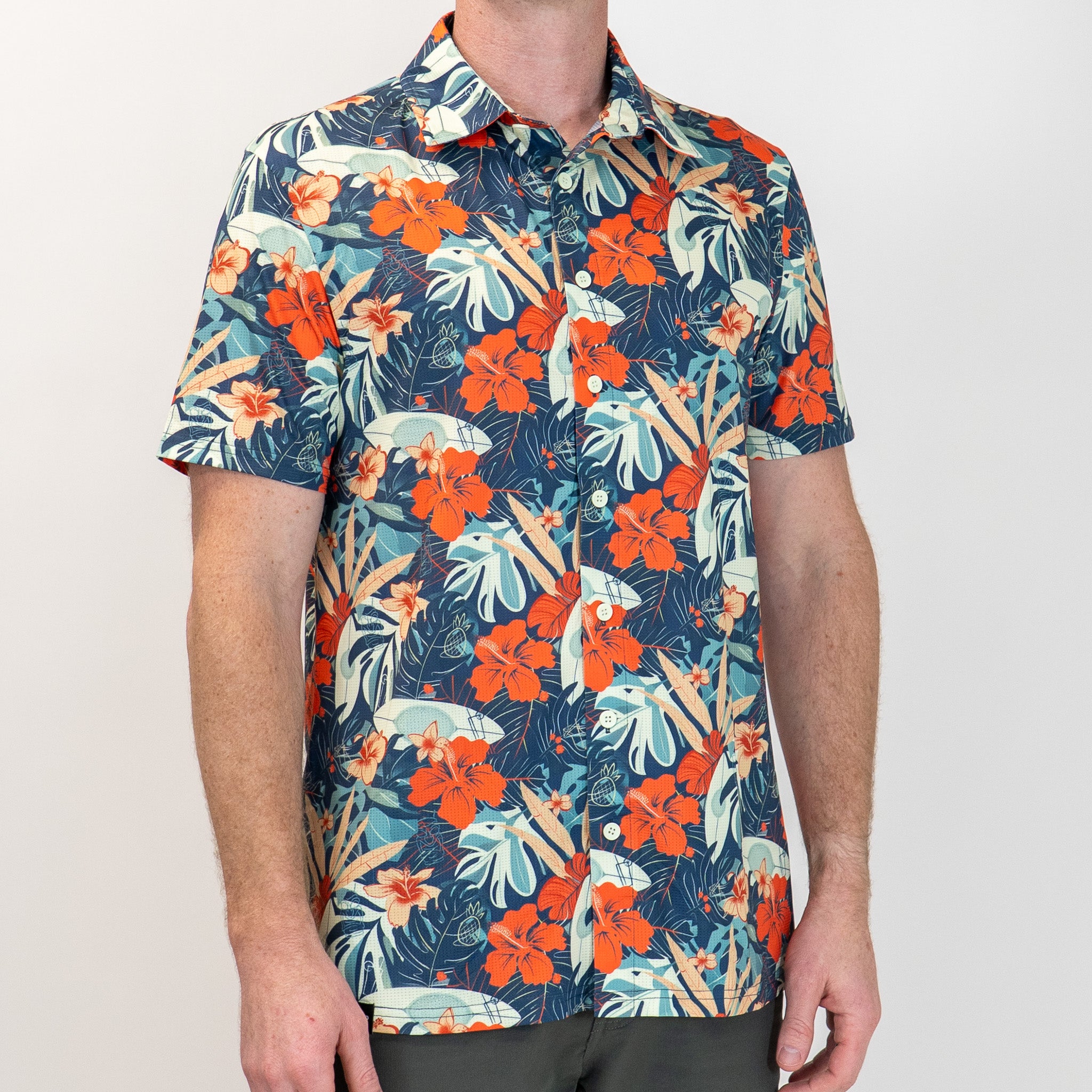 The Paradise Pedal Button Up brings island vibes to the singletrack with a punchy floral print and cheeky tiki drinks to match. Whether you’re slicing through trails or just chasing party laps, this shirt delivers good times only. Ride hard, chill harder, rip some party laps, and sip some tiki drinks all in the Paradise Pedal FlexGrid Button Up.