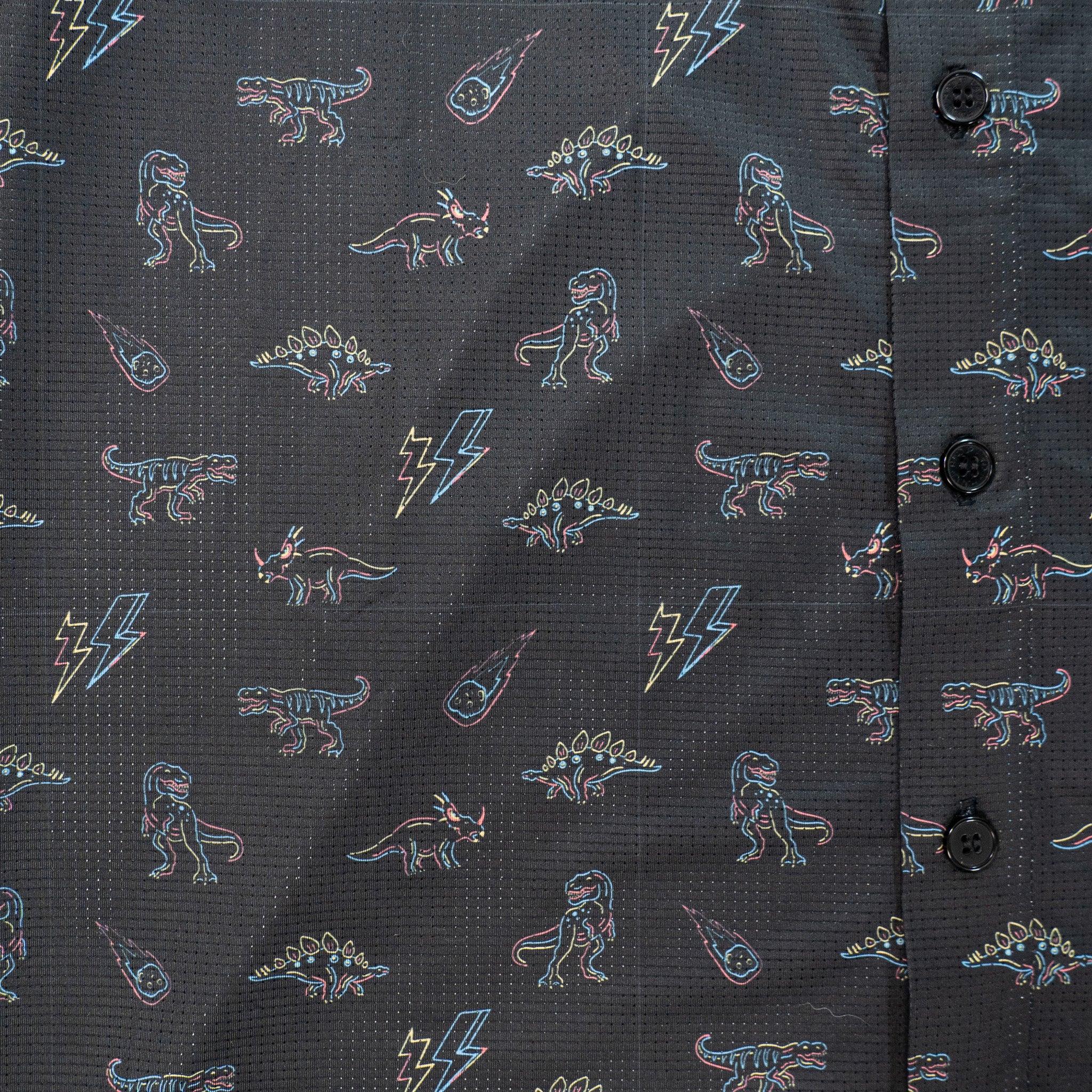 Shred like a T-Rex being chased by meteor in this Dino-Mite Button Up Shirt! (see what we did there....) This Button Up featuring an epic design of dinosaurs dodging fiery comets, are the ultimate fusion of extinction-level style and trail-blazing breathability. 🌋🦖✨