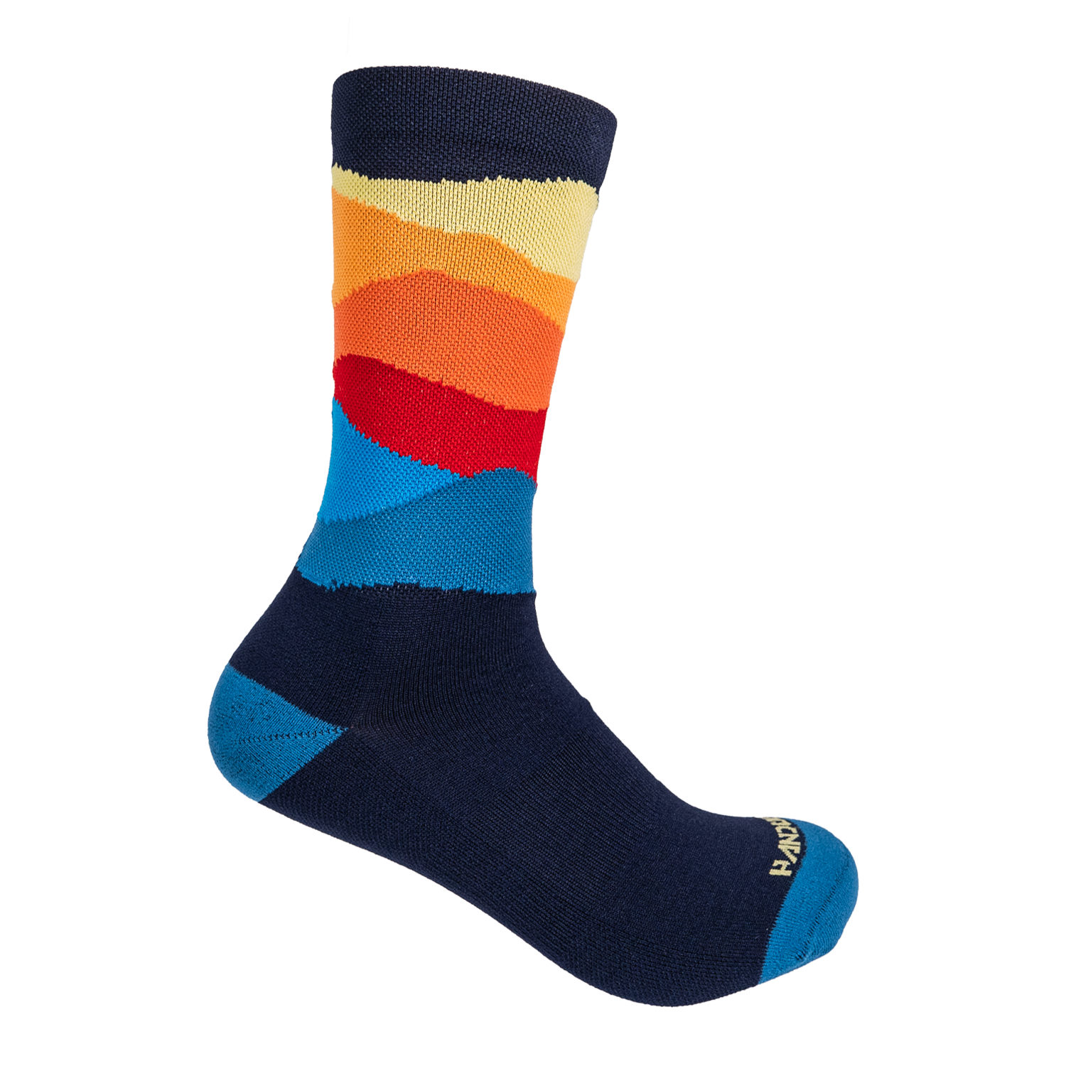 Atop a vantage point, you can look out over this great country side and see layers of trees, ridges, valleys, and mountains. Didn't quite make it to the top of that vantage point this time? Just look down at your ankles in these socks. You're welcome. Now head back to the truck for a post-ride bevvy.