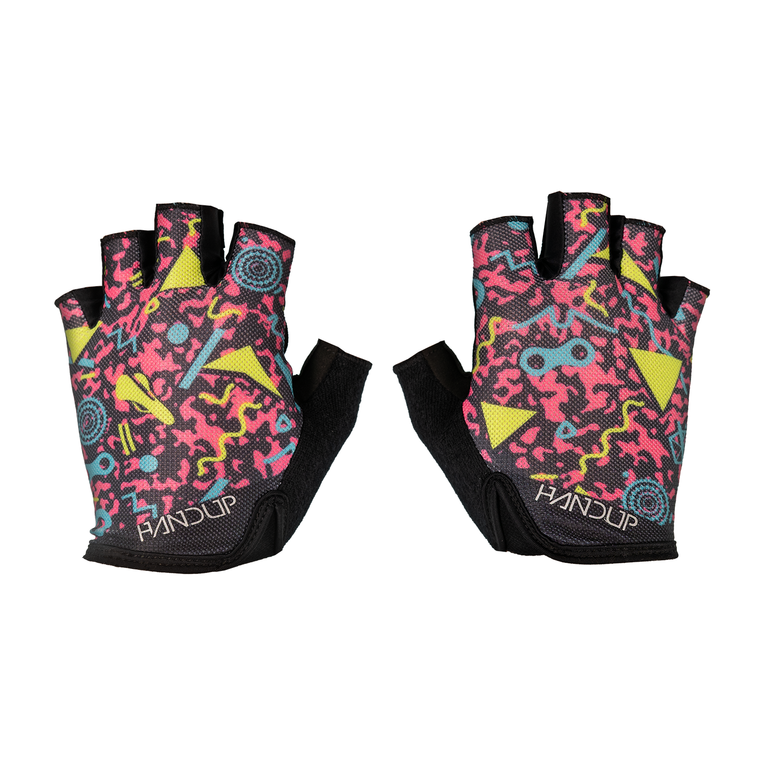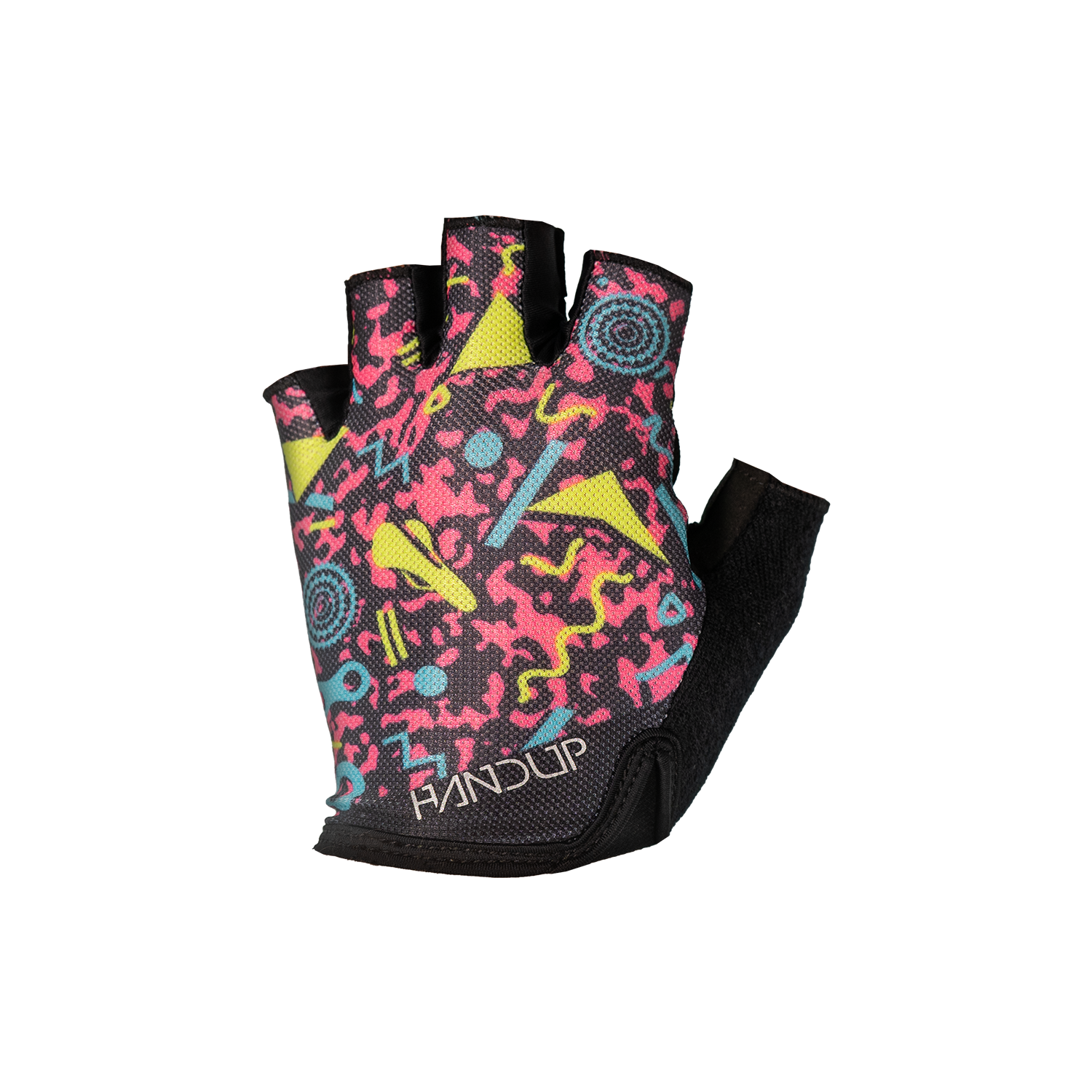 Straight from the roller rink to the road, these are a full-send throwback to the bright, geometric chaos of ’90s roller rink carpets. Neon colors, wild shapes, and vibes you could feel through your socks, if you ever skated under blacklights while bad pop music blasted, these gloves are for you!