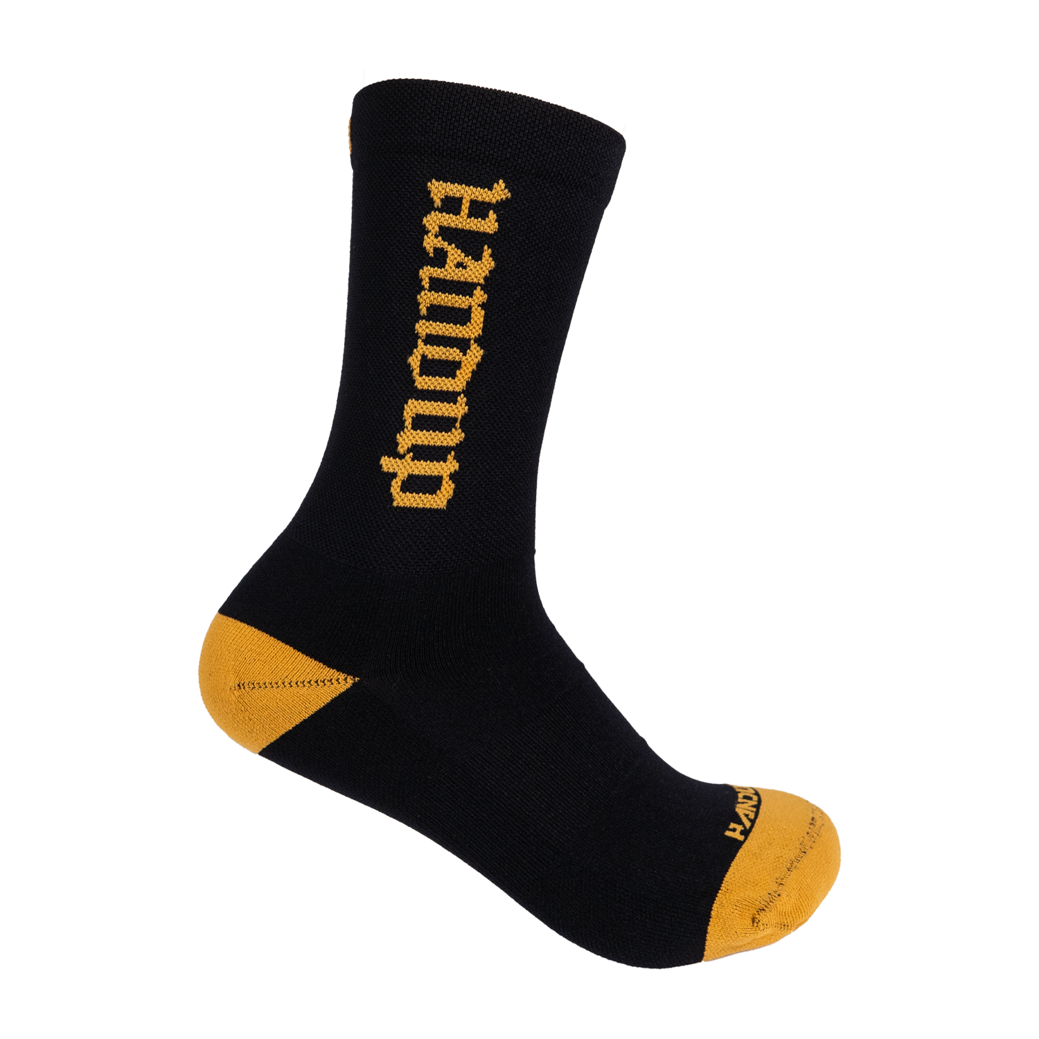 Handup FootDown Socks are a foot cover like no other. Their minimalist, bold designs were built for long days in the great outdoors and even long nights out on the town. These feature a classic Old English (OE) HANDUP logo down each side.