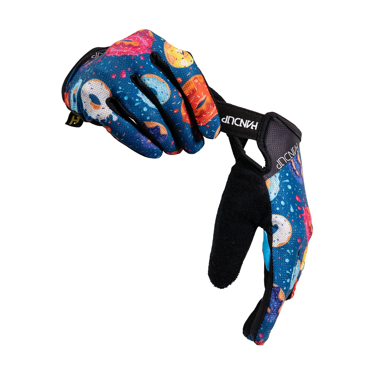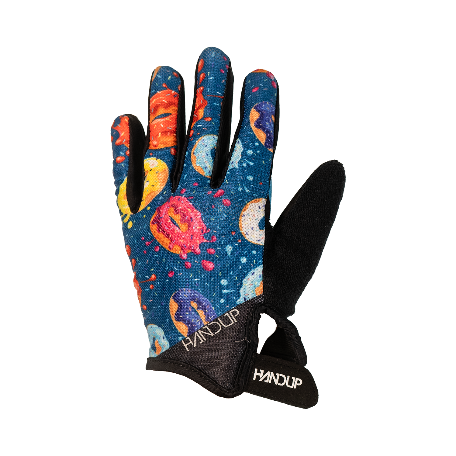 Donuts floating across the design like a sugar-fueled daydream, these sprinkle-covered donut gloves are made for the kids who crush donuts as hard as they crush trails.