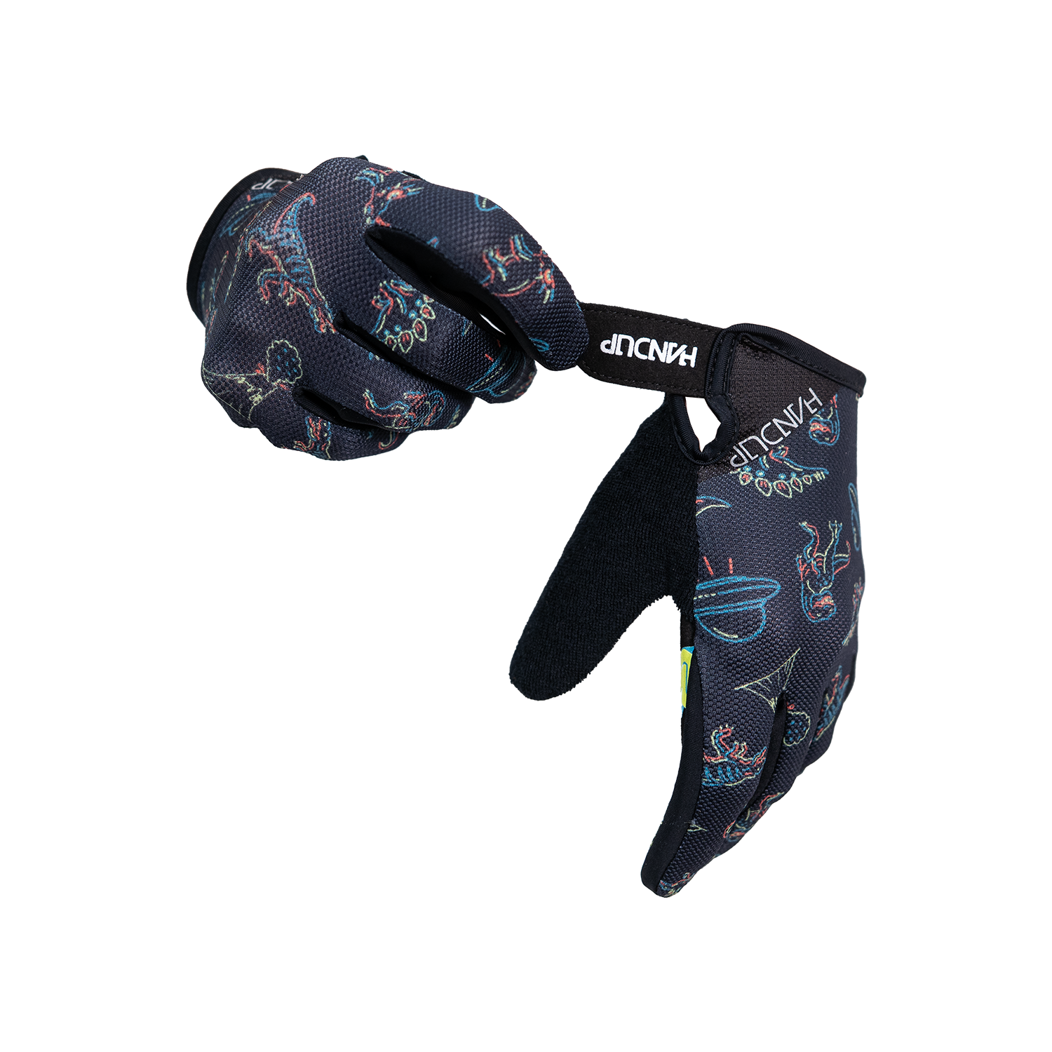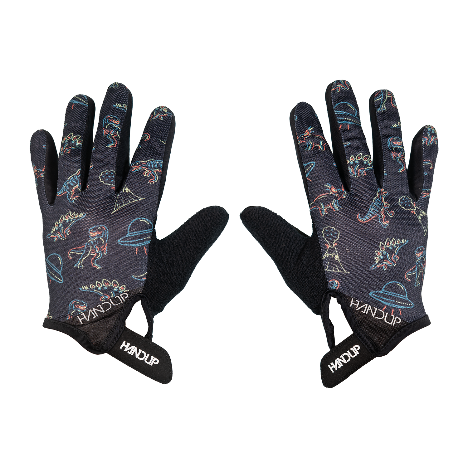 Nobody really knows what happened to the dinosaurs… but we’ve got a theory. These gloves explore the idea that aliens rolled in, scooped up a few dinos, and left the rest of us to ride bikes and ask questions. These gloves are for those of you who wonder what’s really out there beyond the berm.